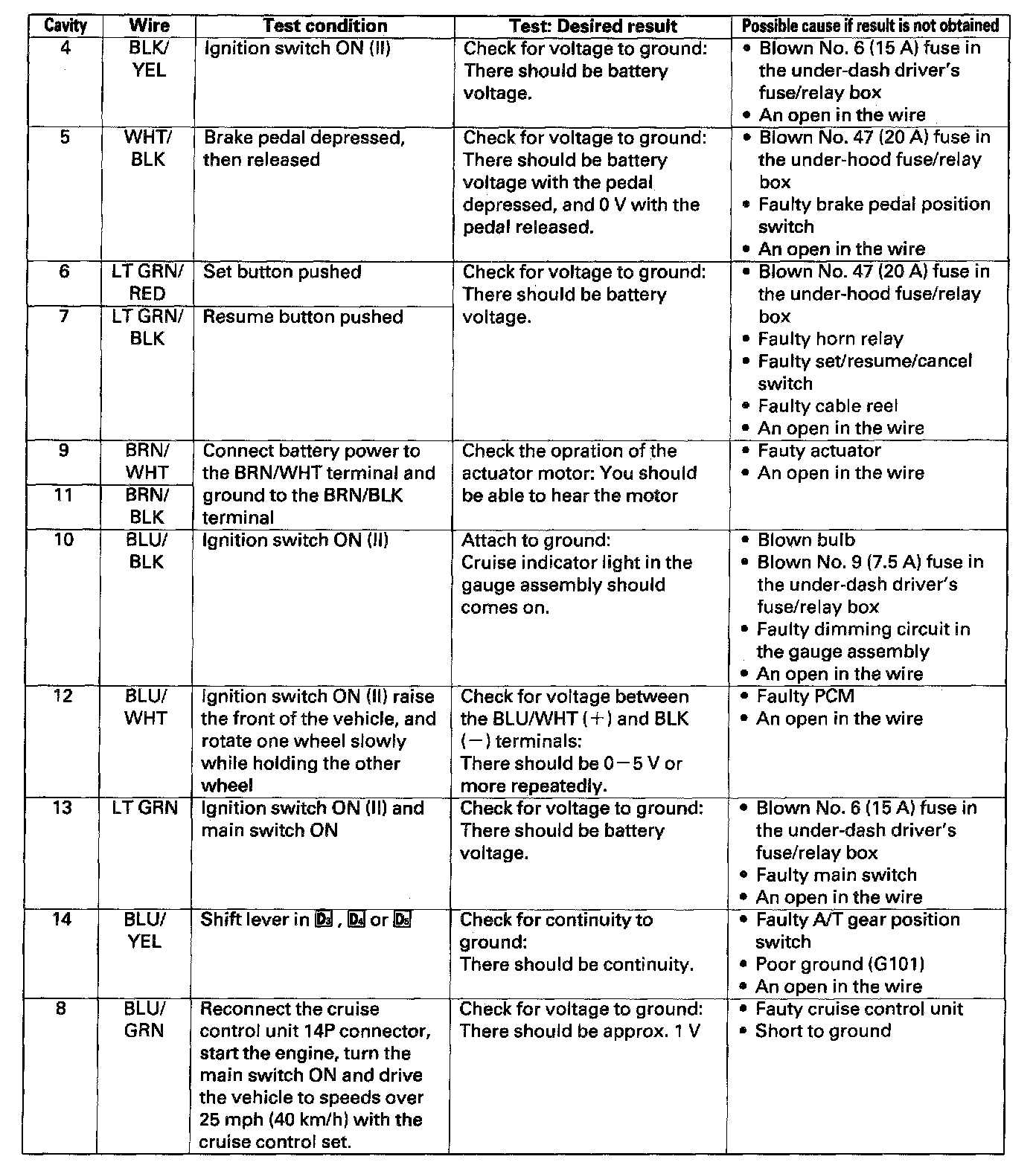 Cruise Control Module: Testing and Inspection