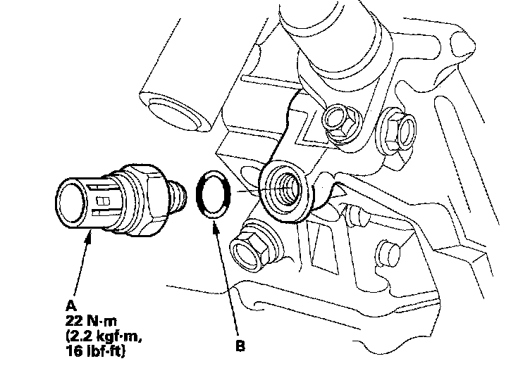 2. Install the VTEC oil pressure switch using a new O-ring (B).