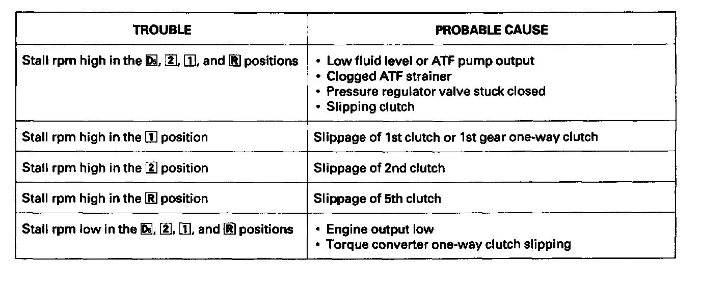 - Stall speed should be the same in the D5, 2, 1 and R positions.