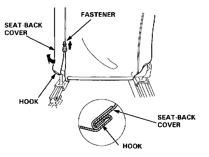 4. Remove the hook and fastener, then fold the seat-back cover back.
