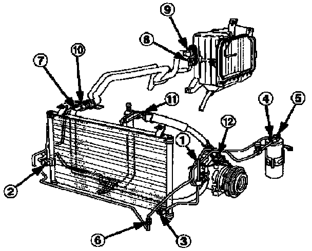 (4) Condenser pipe to the receiver/dryer