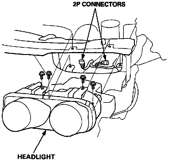 2. Remove the mounting bolts, then pull out the head-light, and disconnect the connectors from it.