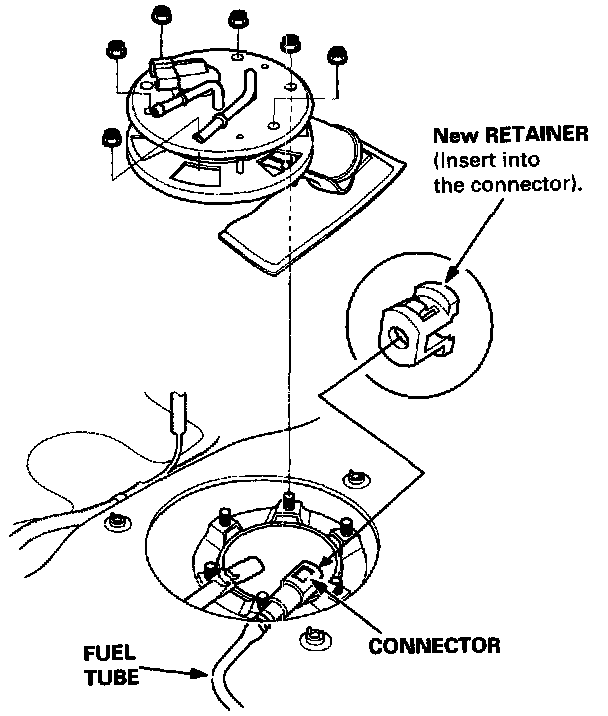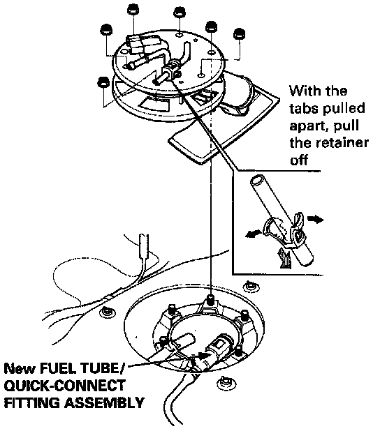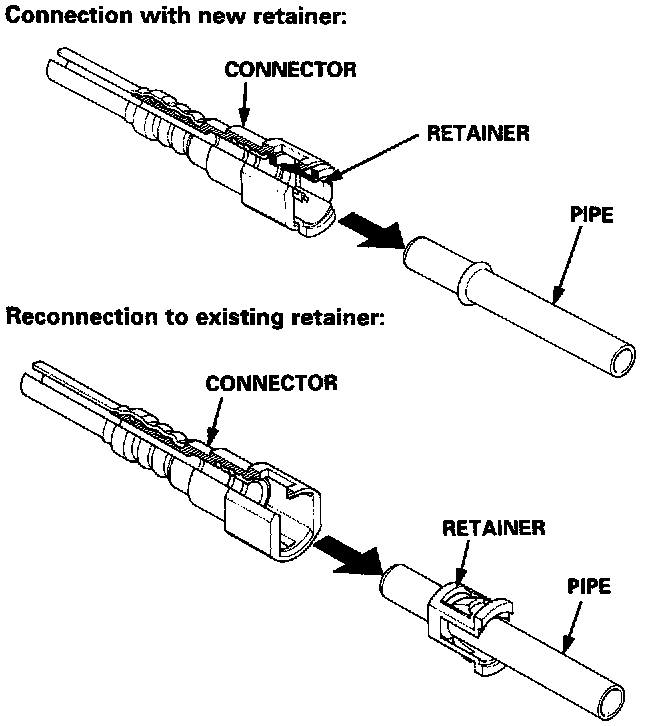 Before connecting a new fuel tube/quick-connect fitting assembly, remove the old retainer from the mating pipe.