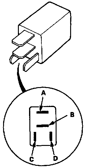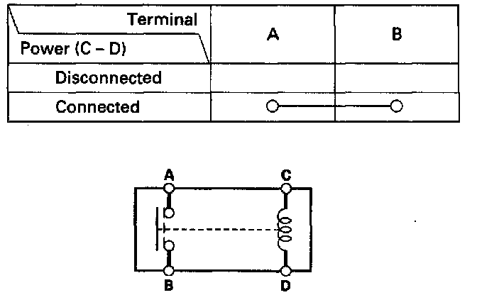 There should be continuity between the A and B terminals when power and ground are connected to the C and D terminals.