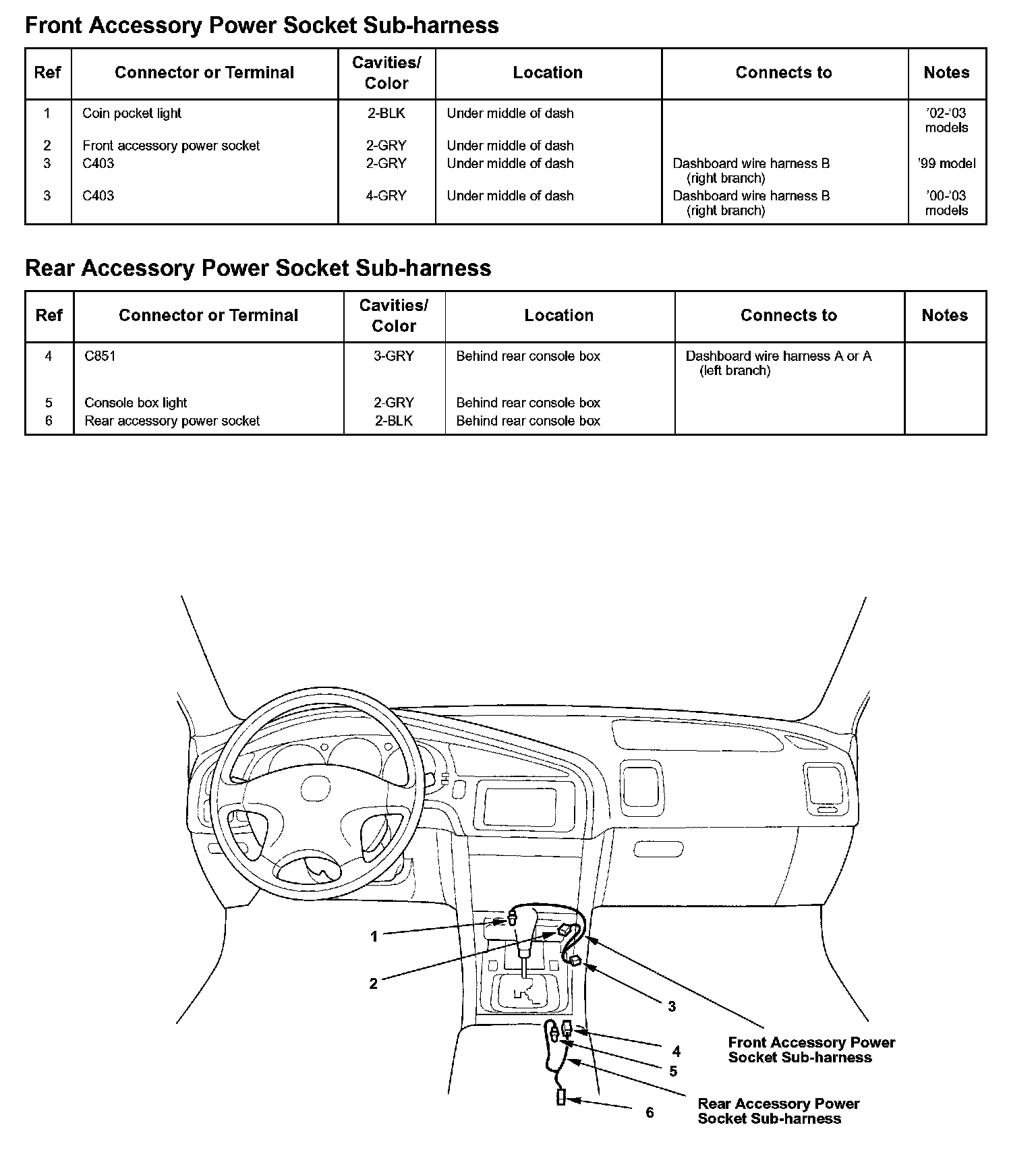 Front Accessory Power Socket Sub-harness/Rear Accessory Power Socket Sub-harness: