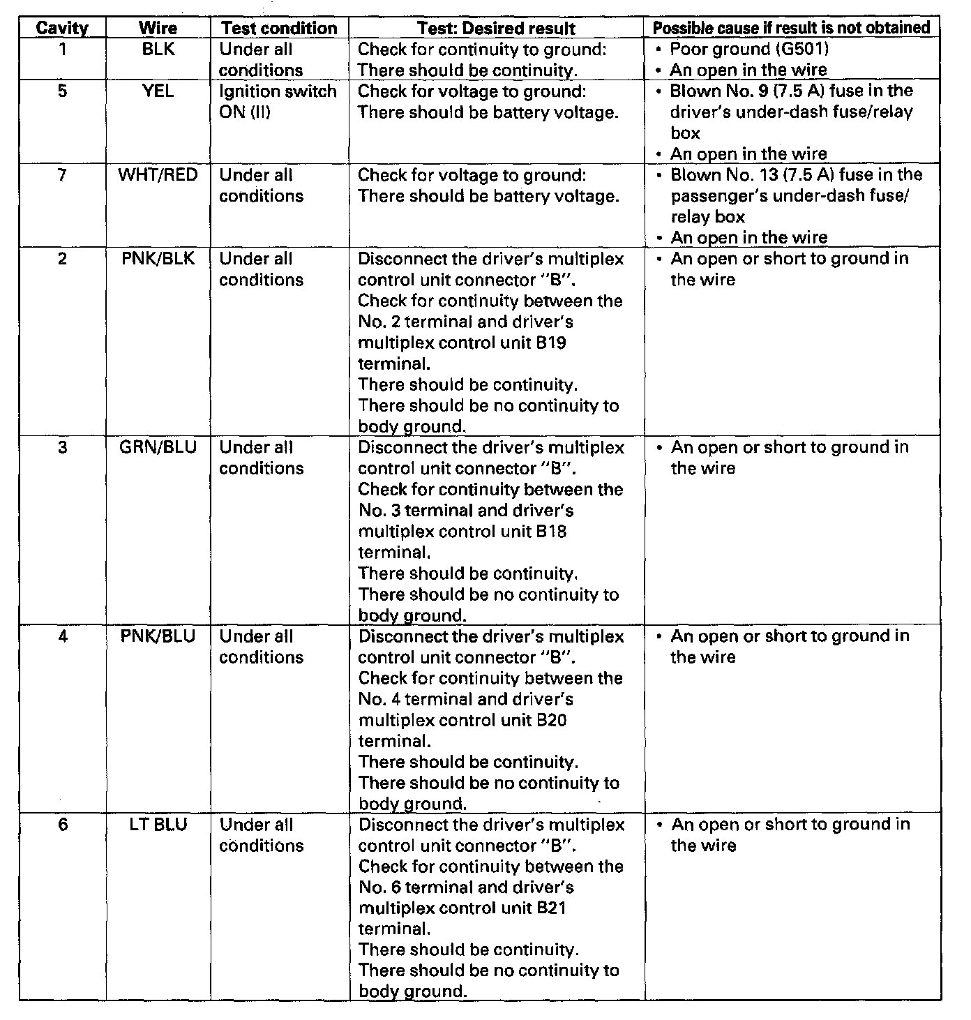 4. With the connector still disconnected, make these input tests at the connector.