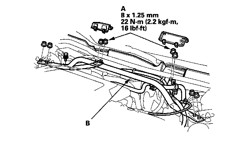 6. Remove the master cylinder mounting nuts (B) and washers.