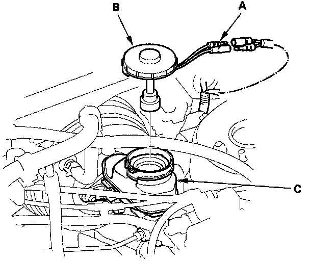 3. Disconnect the brake fluid level switch connectors (A), and remove the reservoir cap (B).