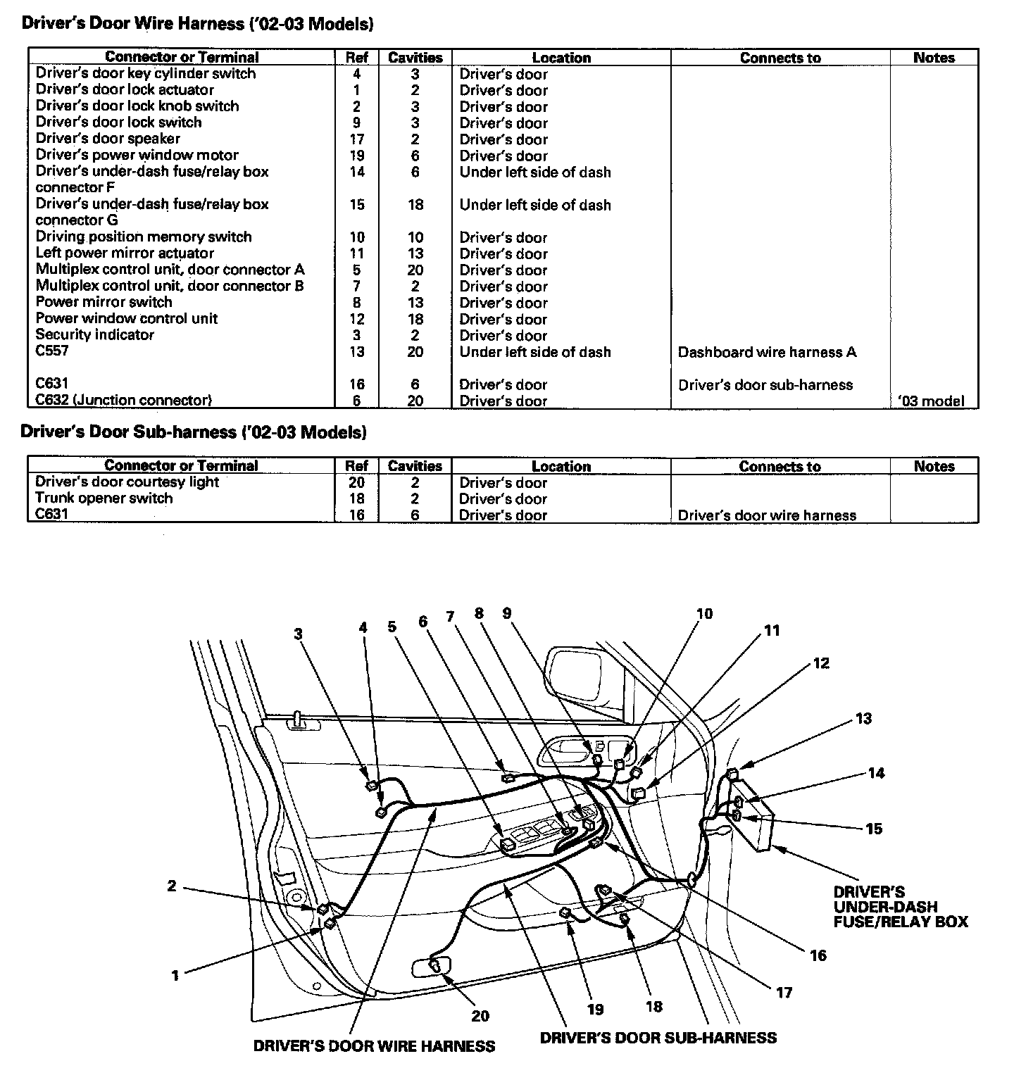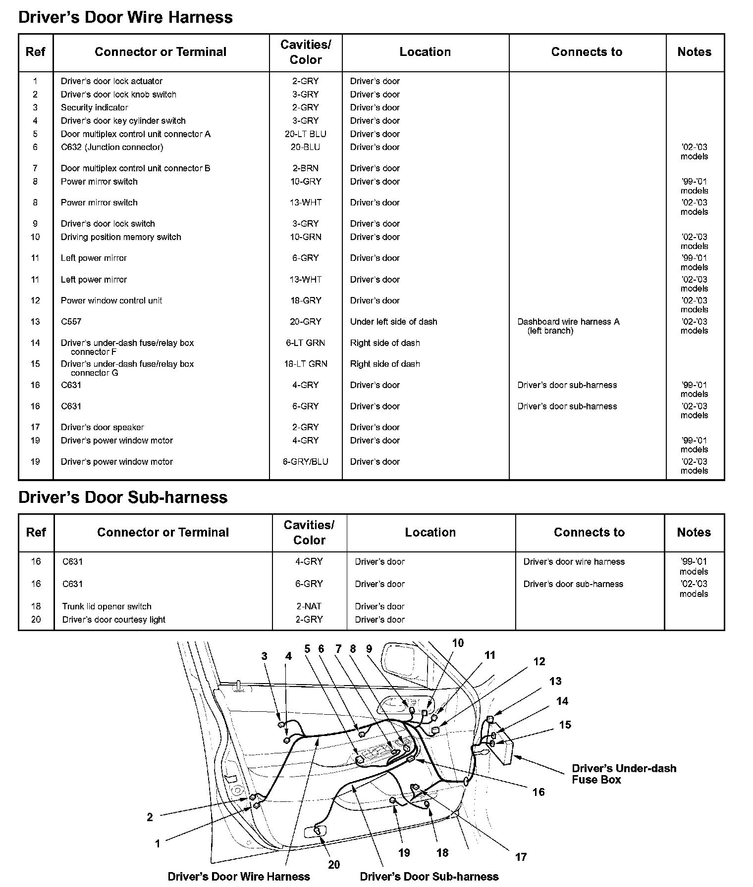 Driver's Door Wire Harness (02-03 Models)/Driver's Door Sub-harness (02-03 Models):