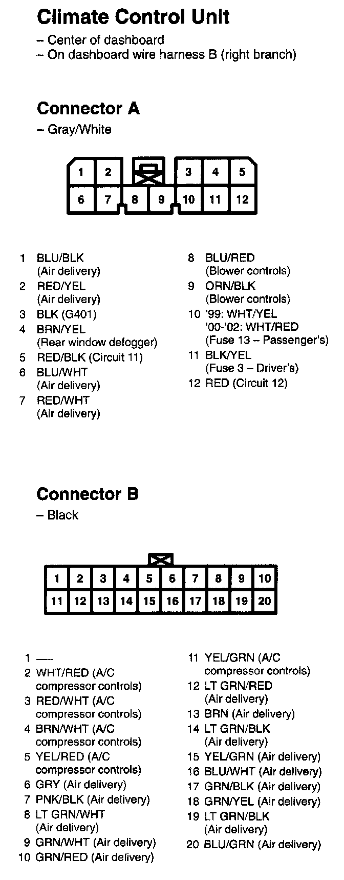 Climate Control Unit Connectors A, B: