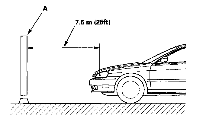 2. Park the vehicle 7.5 m (25 ft) away from a wall or a screen (A).