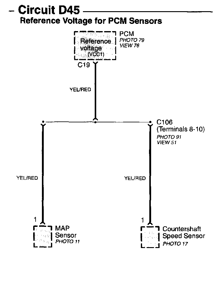 Circuit D45 Reference Voltage For PCM Sensor Image 15-9a: