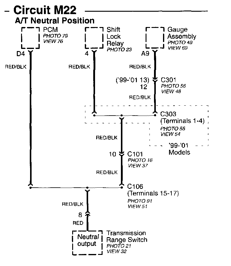 Circuit M22 A/T Neutral Position Image 15-11d:
