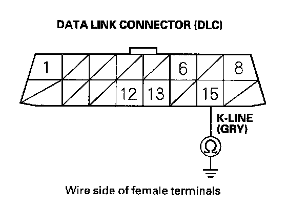 9. Check for continuity between DLC terminal No.15 and body ground.