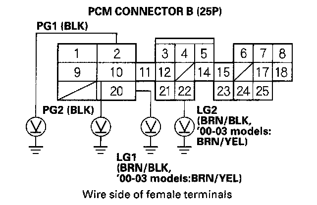 - An open in the wire(s) between the PGM-FI main relay and PCM connector terminals B1 and B9.
