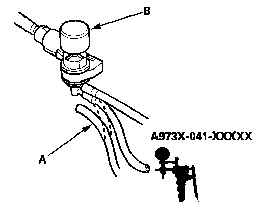 12. Disconnect the lower vacuum hose (A) from the engine mount control solenoid valve (B) and connect a vacuum pump/gauge to the hose.