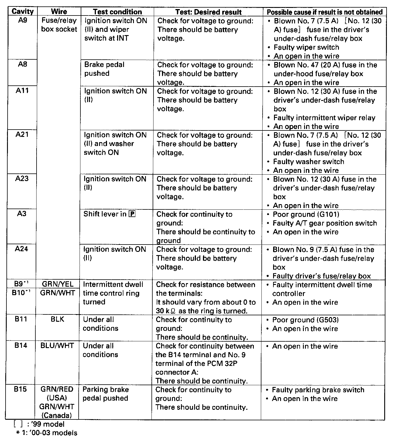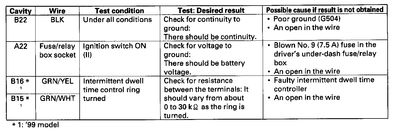 Wiper Control Module: Testing and Inspection