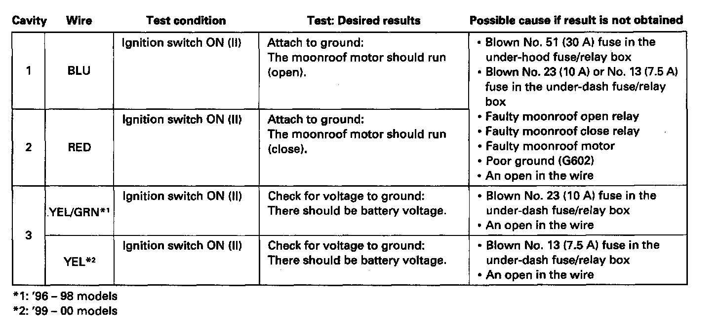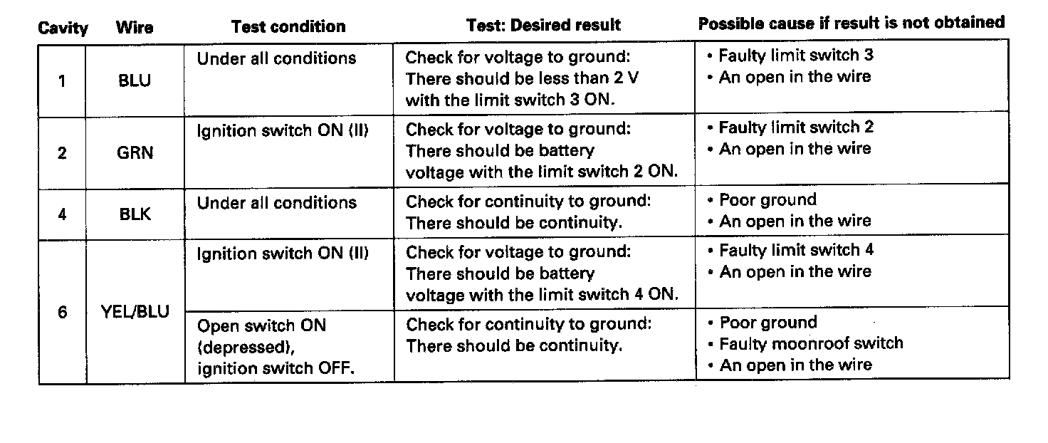 NOTE: The limit switches are switched in the moonroof positions as shown.