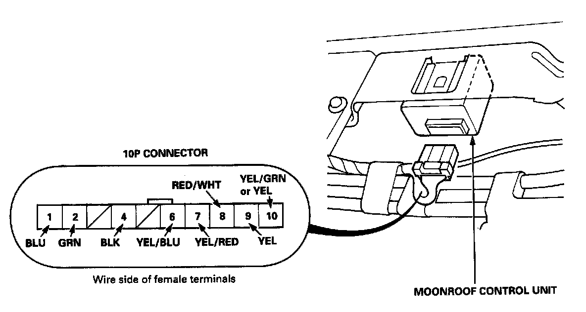 1. Remove the right rear pillar trim.2. Disconnect the moonroof harness 3P connector from the right side wire harness.