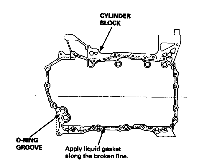 13. Apply liquid gasket to the cylinder block, then install the oil pan.