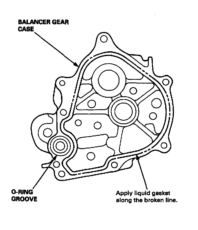 21. Apply liquid gasket to the oil pump mating surface of the balancer gear case.