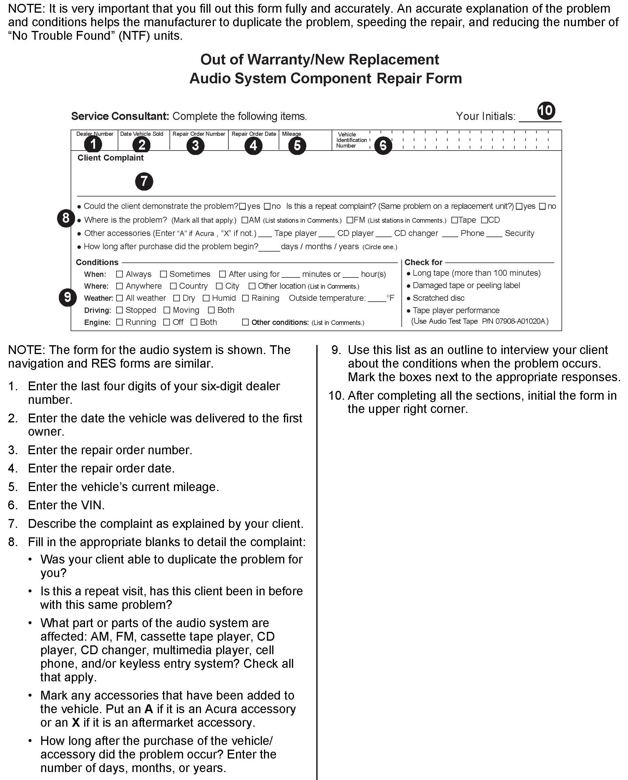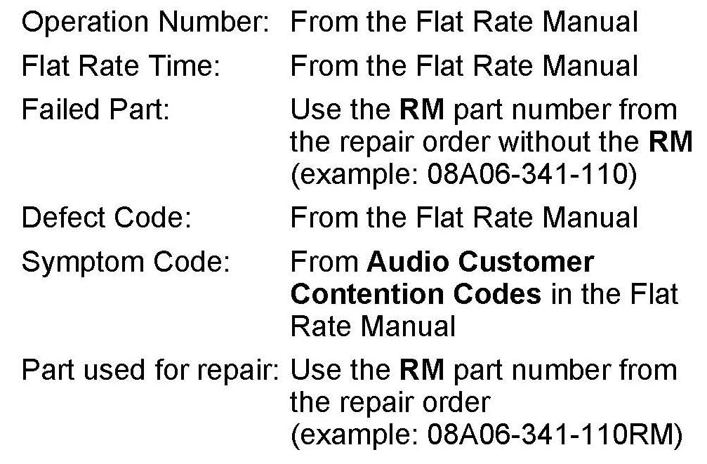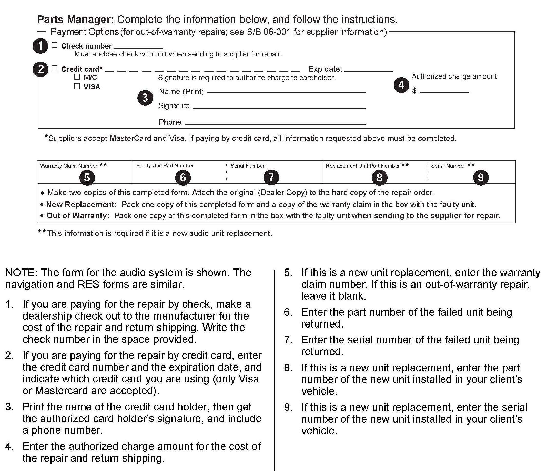 COMPLETING THE OUT-OF-WARRANTY/NEW REPLACEMENT AUDIO SYSTEM COMPONENT REPAIR FORM