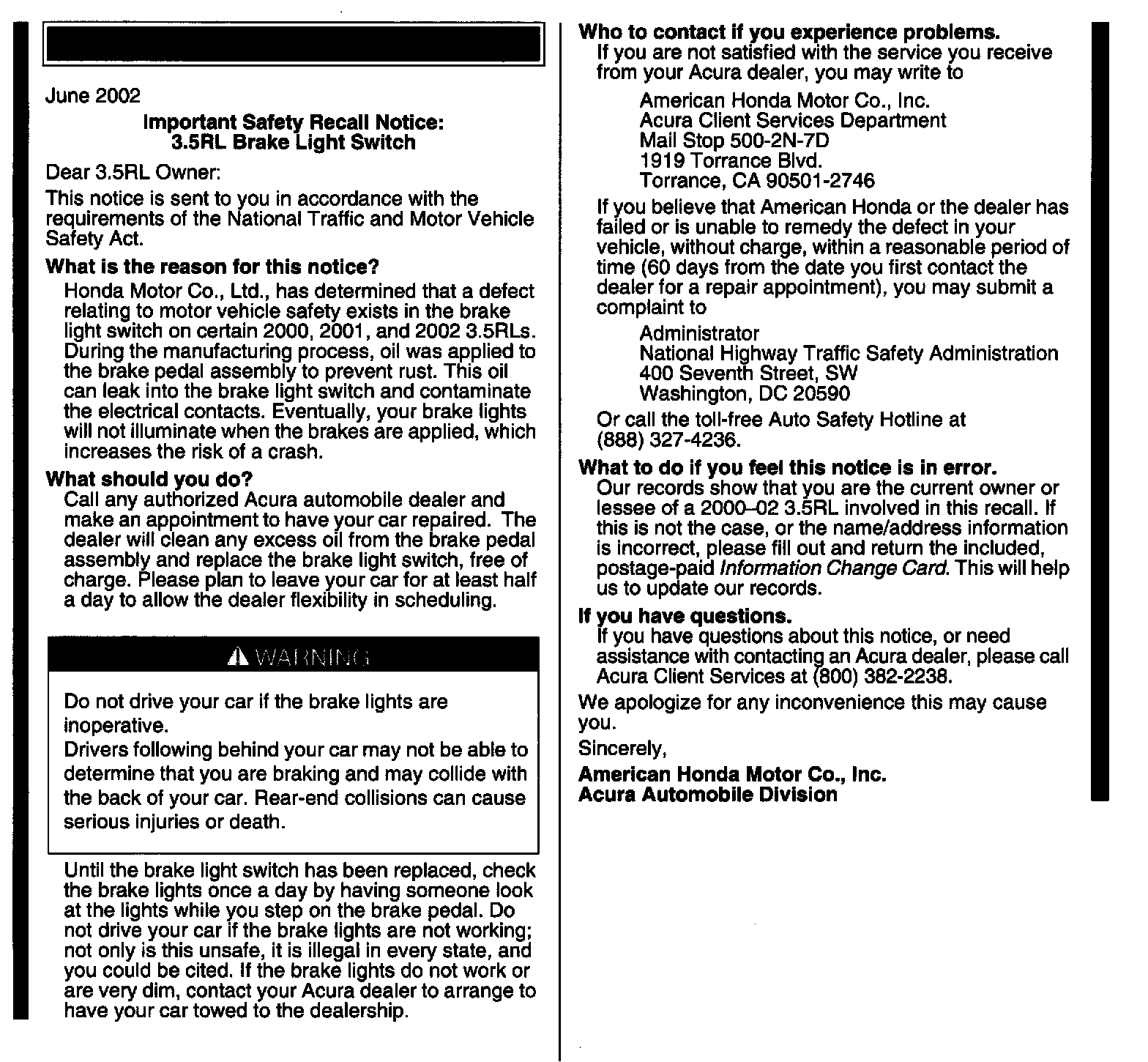 2002 3.5RL - From VIN JH4KA9...2C000011 thru JH4KA9...2C012956