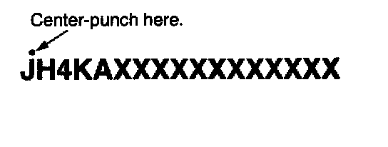 10. Center-punch a completion mark above the first character of the engine compartment VIN.