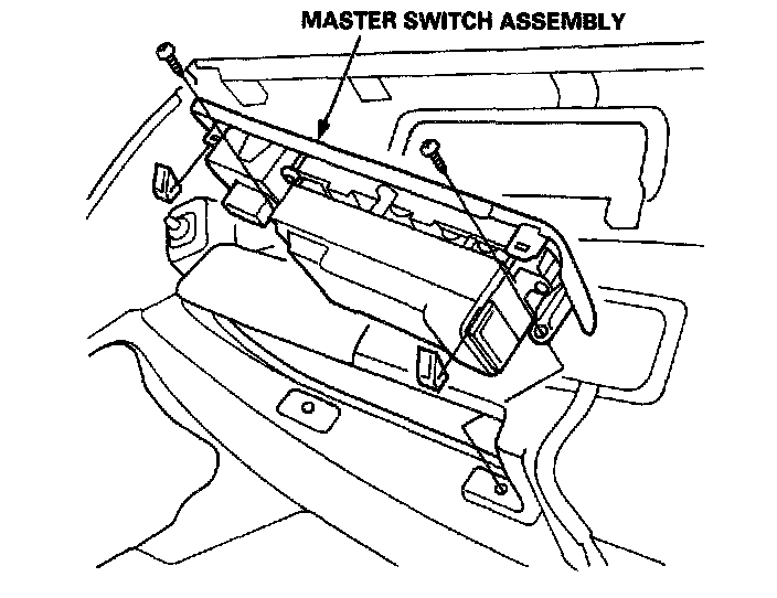 1. Remove the driver's door panel.2. Remove the two mounting screws, then remove the master switch assembly from the door panel.