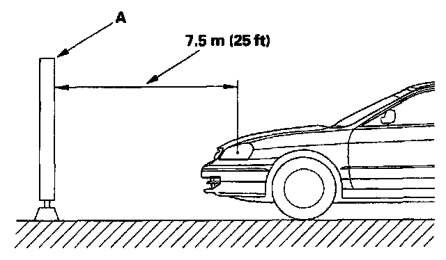 2. Park the vehicle 7.5 m (25 ft) away from a wall or a screen (A).