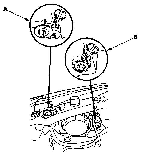 6. If necessary, adjust the headlights to local requirements by turning the horizontal adjuster (A) and the vertical adjuster (B).