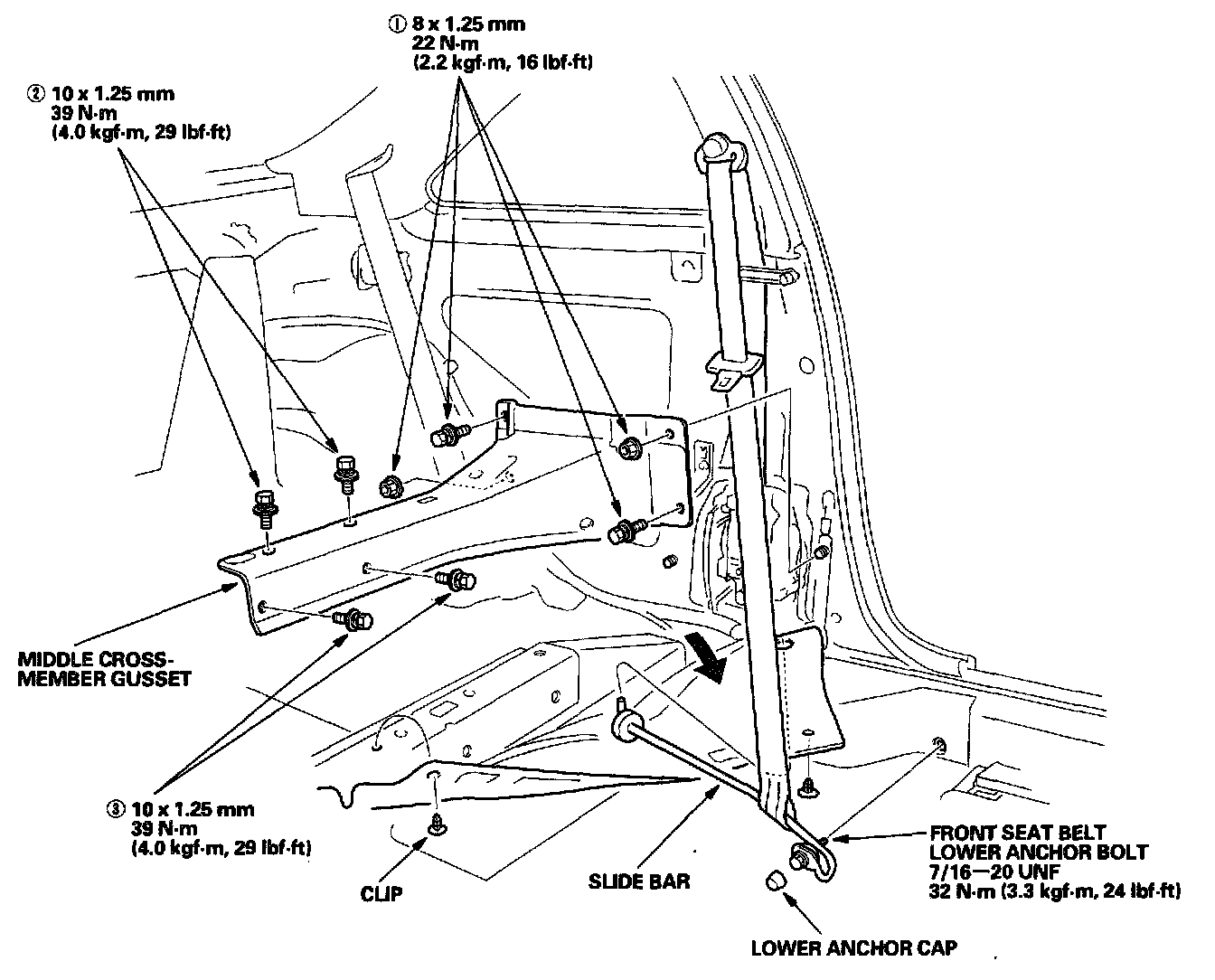 3. Install the gusset in the reverse order of removal, and torque the mounting hardware in the following sequence to avoid damage to the quarter panel.