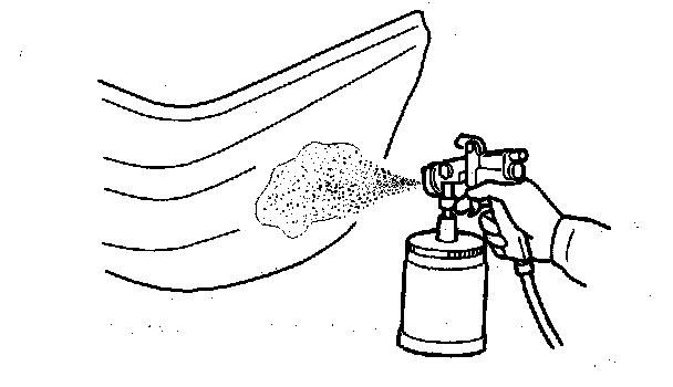 - Use the 2-component type primer surfacer (gray) and a spray gun.