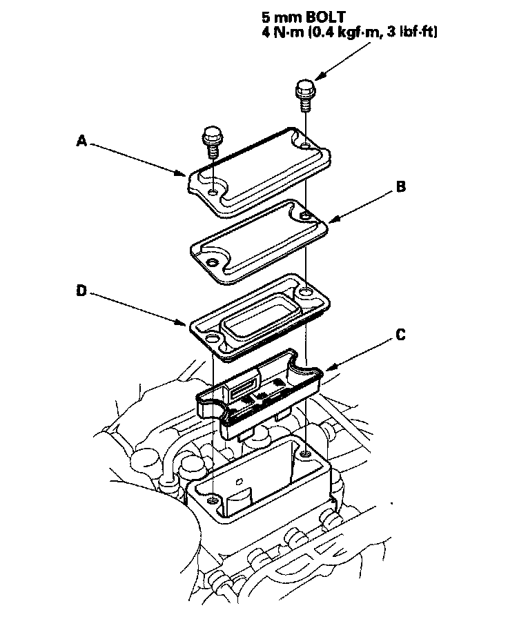 2. Remove the reservoir cap (A), diaphragm plate (B), filter (C), and diaphragm (D).