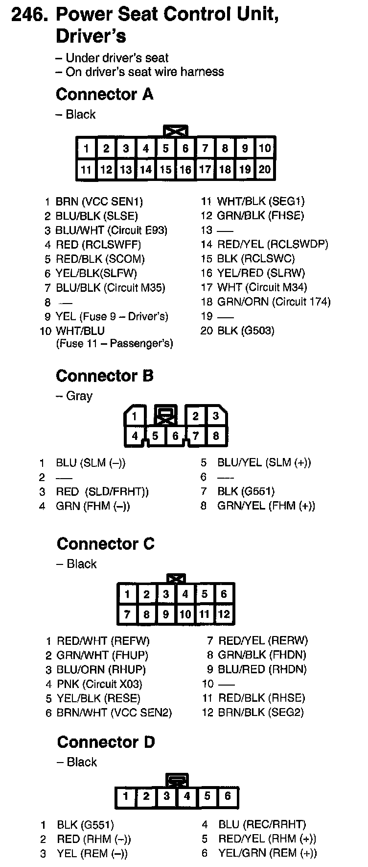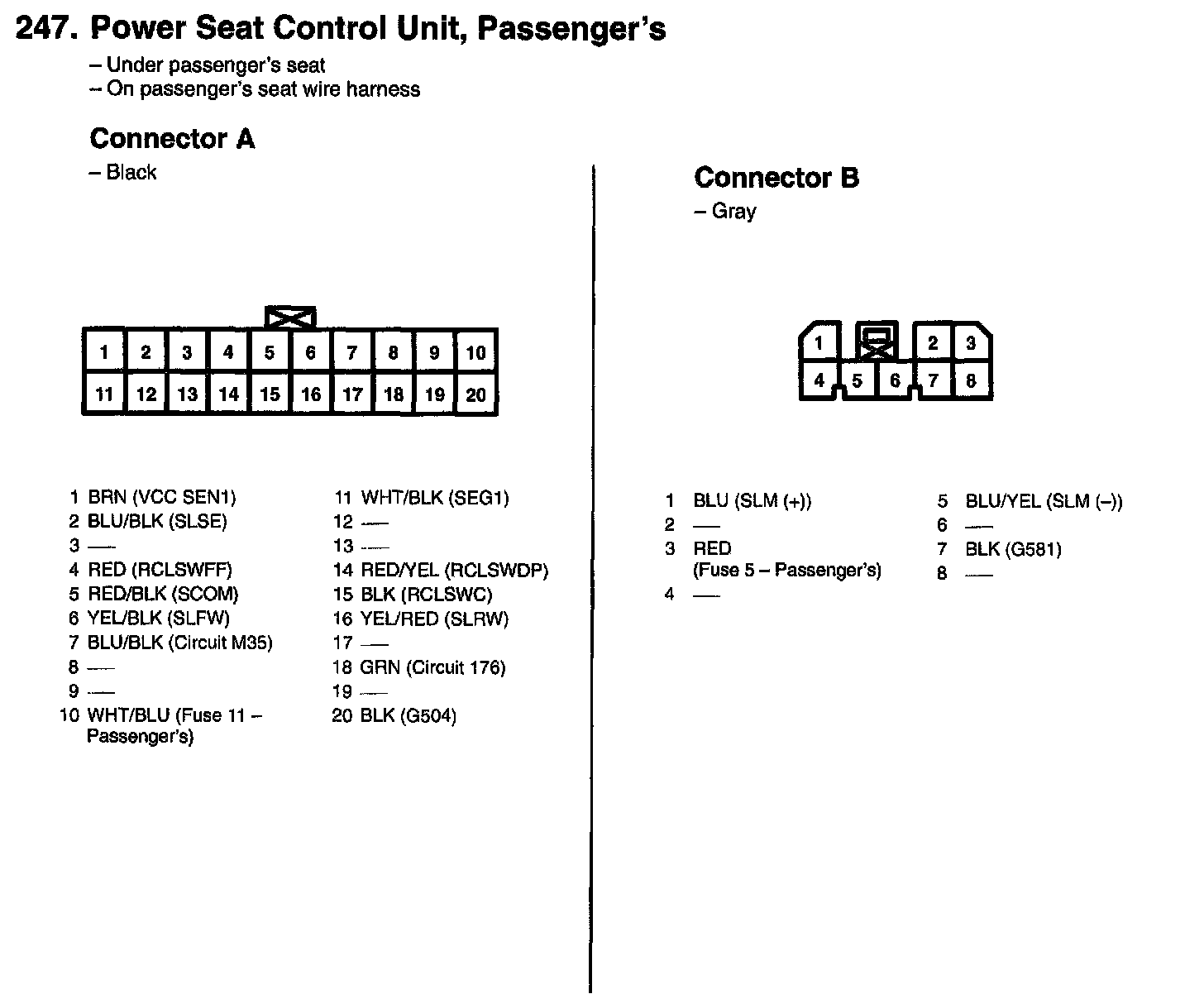 246. Power Seat Control Unit, Passenger's (Connectors A And B):