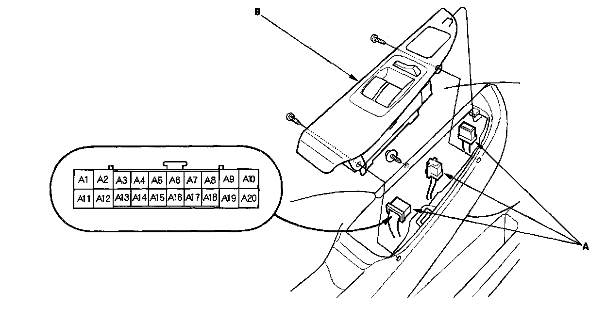 10. Make the following input tests at connector B and the driver's under-dash fuse/relay box socket.