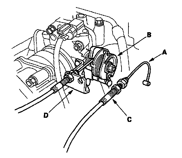 2. Remove the cable sheath (C) from the cable bracket (D).