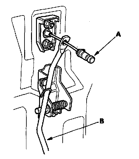3. Remove the throttle cable (A) from the accelerator pedal (B).