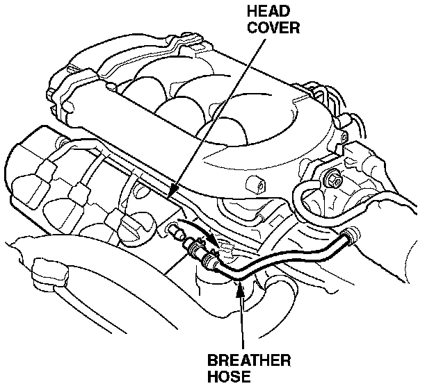 1. Disconnect the breather hose connecting the front head cover to the air inlet tube.