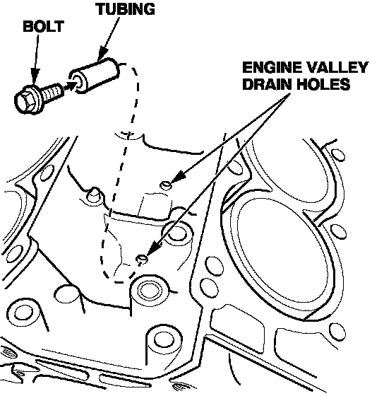 To fill an engine valley section with soapy water, plug the drain hole in the valley with a piece of tubing (P/N 36285-P8A-A00) around a 6 x 15 mm bolt.