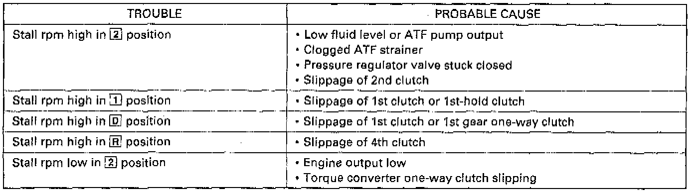 - Stall speed should be the same in [1], [2], [D] and [R] positions.
