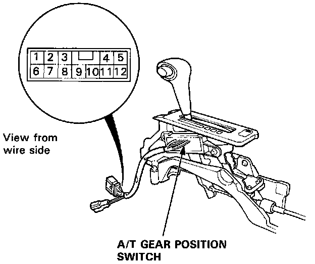 3. If the fuse and bulbs are OK, disconnect the 12P connector from the A/T gear position switch (back-up light switch).