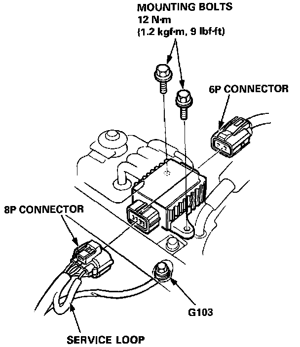 1. Disconnect the 8P and 6P connectors from the Ignition Control Module (ICM).Ignition Control Module (ICM) Replacement: