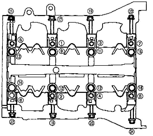 Tighten the cylinder head bolts sequentially in two or three steps.
