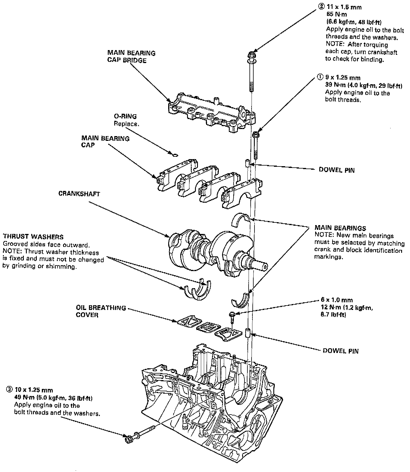 - Apply clean engine oil to the bolt threads and washer contact surfaces.