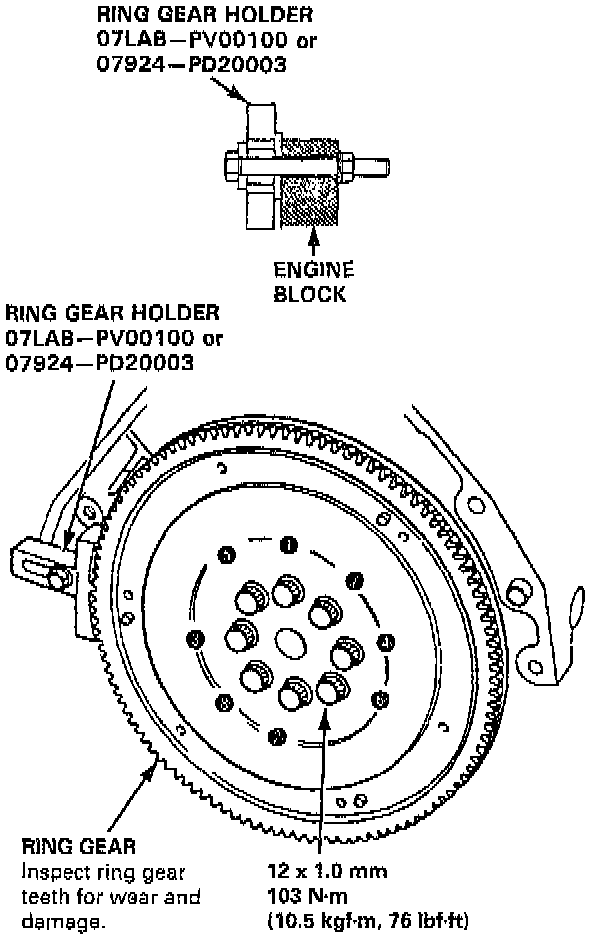 NOTE: The manufacturer recommends using a beam-type torque wrench. When using a preset-type torque wrench, be sure to tighten slowly and not to over-tighten.