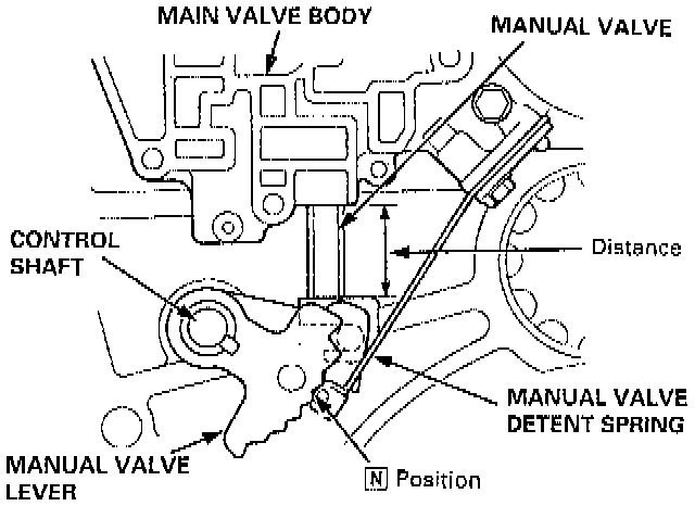 5. Measure the distance between the main valve body and manual valve as shown.