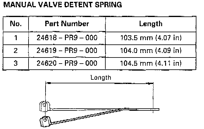 NOTE: Select the appropriate manual valve detent spring when these parts are replaced: