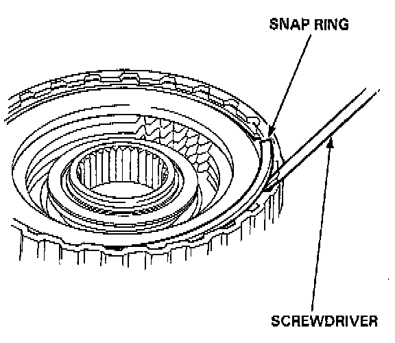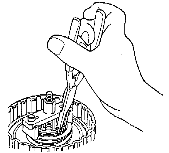 1. Remove the snap rings, then remove the clutch end plate, clutch discs and plates.