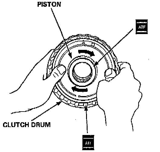 4. Install the piston in the clutch drum. Apply pressure and rotate to ensure proper seating.